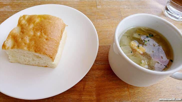 前菜のふわふわフォカッチャとスープ